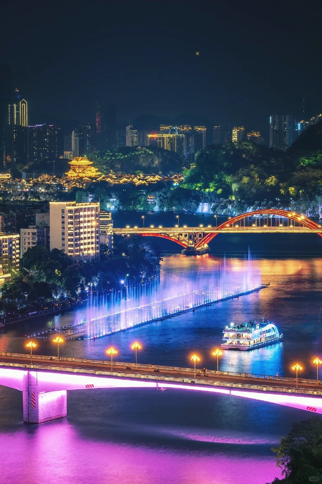 3.柳江夜景!如一串晶莹剔透的彩色夜明珠,汇成龙城夜色中最魅力的人间美景!