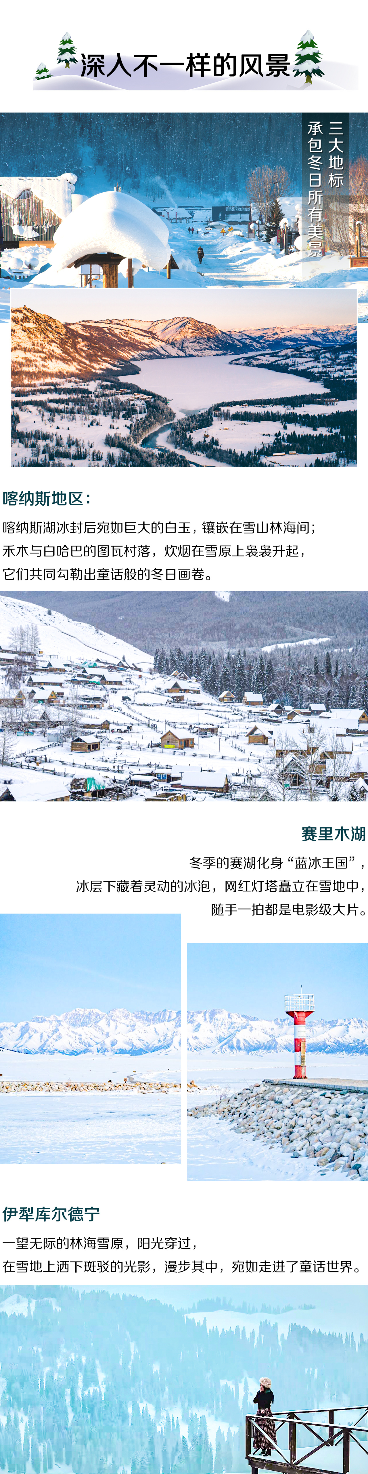 4.禾木、喀纳斯、白哈巴山区冬季气温较低,气候严寒,如遇水管冻裂、大雪压断电线,临时断水断电等特殊情况,请以平常心对待。