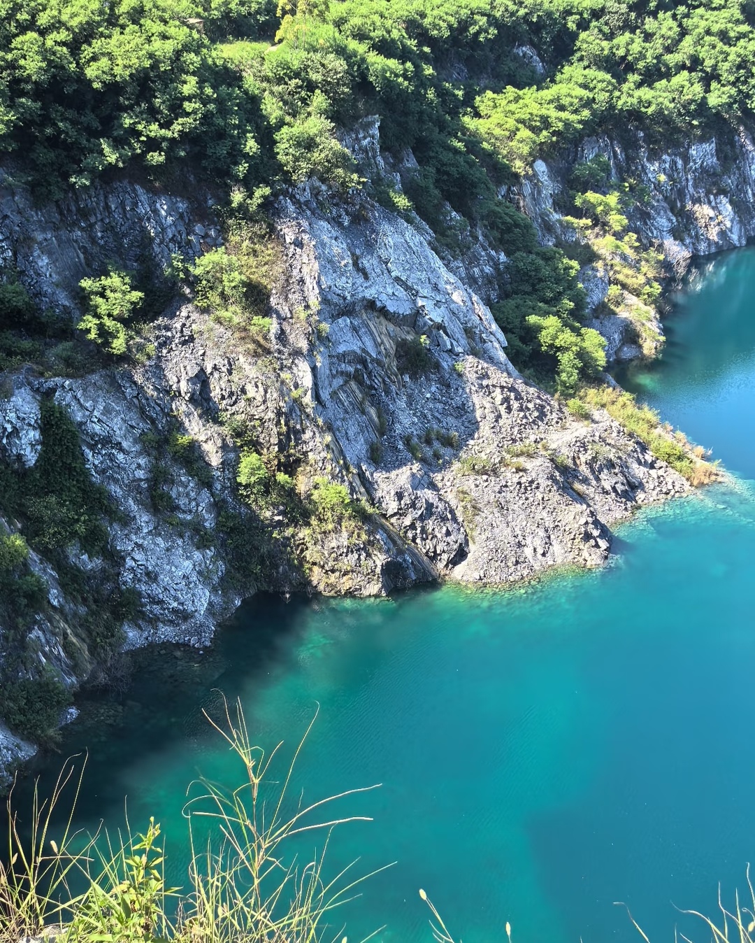 广东居然还有个这么小众又好看的地方!被青山绿水环绕~湖水蓝得像宝石,旧矿山改造的咖啡馆也太有感觉了,工业风+自然景完美碰撞!阳光洒在湖面上,湖水蓝得像巨大的蓝宝石,波光粼粼。