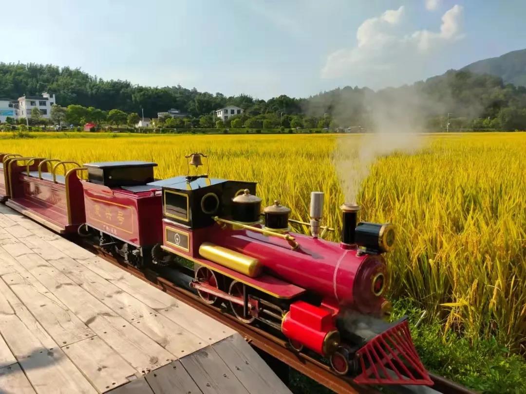 10:00 左右到达【从化米埗小镇】,欣赏金黄的稻田,穿梭其中的小火车,风拂过稻田,沙沙作响,静静的坐在傍边,仿佛自己就是宫崎骏电影里那些追梦闪光的人;