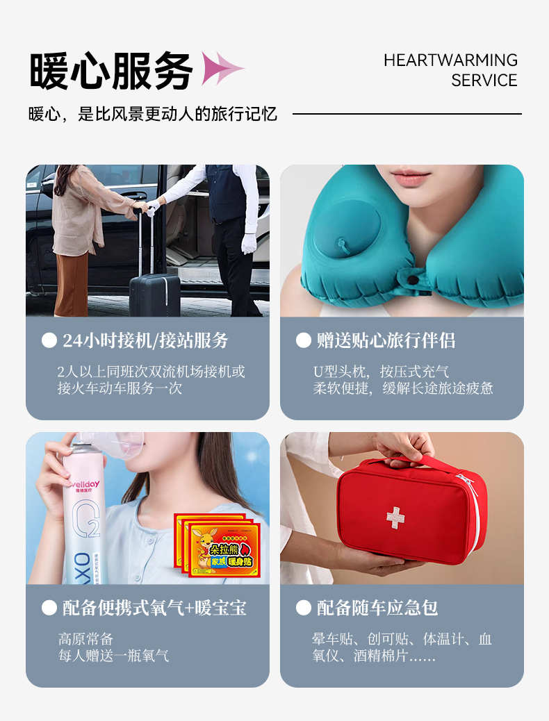 1,如需要接机或者接站,请于出发前2天给到客服人员具体的航班班次信息,不接受临时安排,无航班号则默认为自动放弃接机/接站服务。