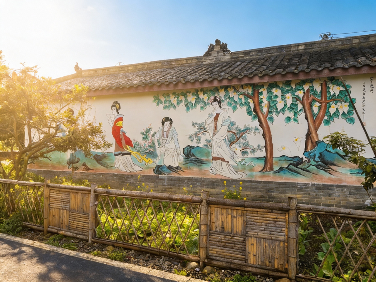 中午 (12:30-14:30):驱车前往绵竹年画村(约110km,2h)。可在此用午餐,并游览1.5小时。这里全年全天开放,可欣赏五彩斑斓的年画墙,还可以体验画年画体验。