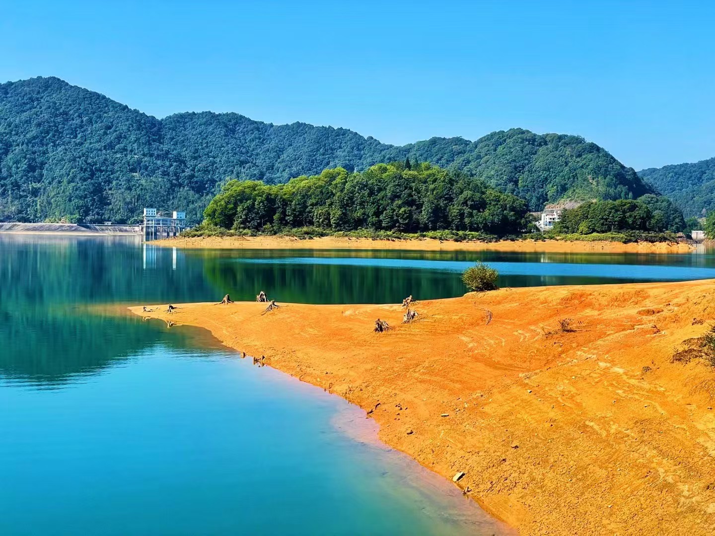 14:00到达恬静的小杉村,感受下被称为广州“小泸沽湖”的如画风光,晴日里,一眼望去,水天相连、同为一色。