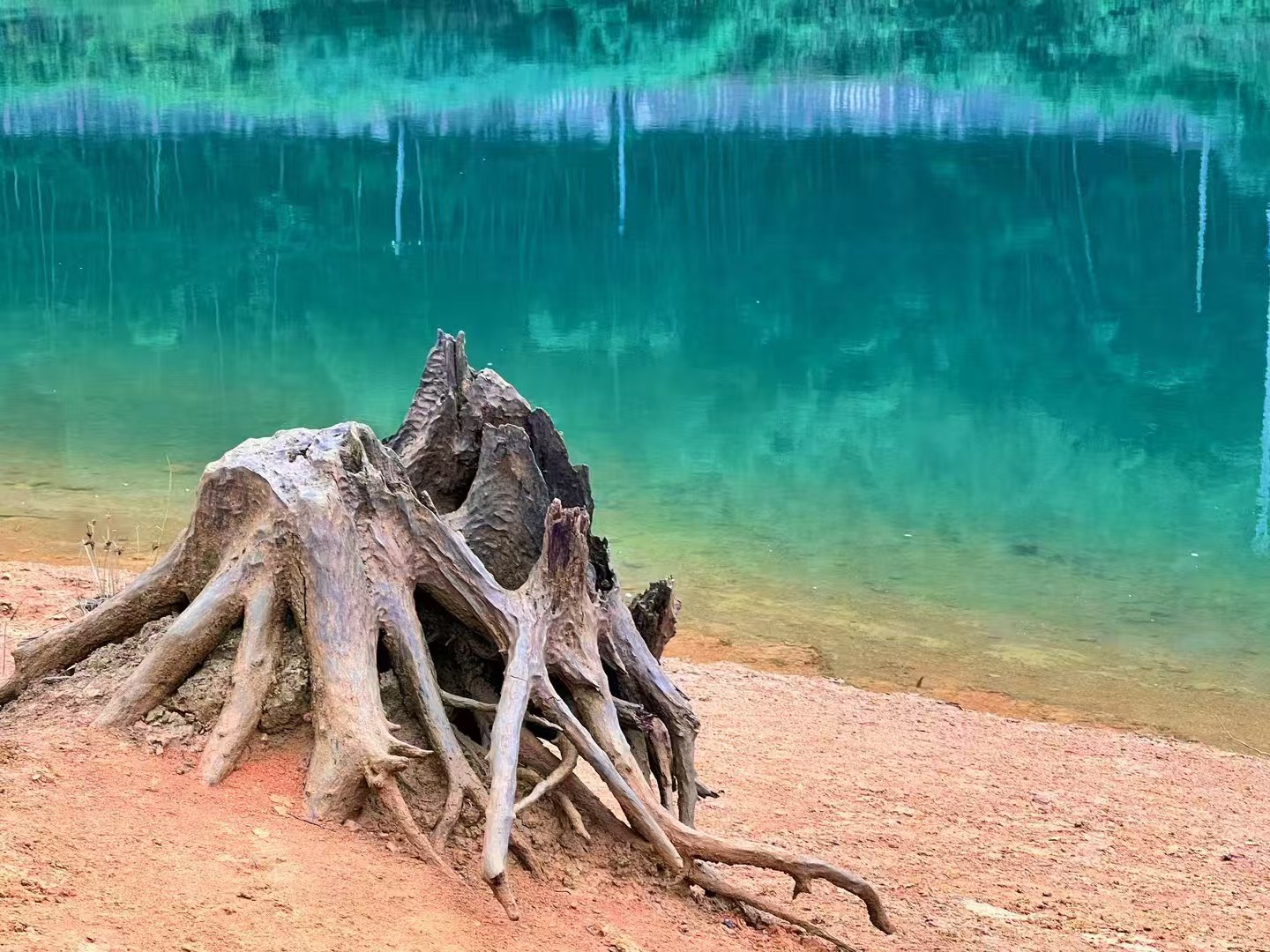 碧波荡漾,风光迷人,湖水倒影,水天一色,景象奇丽,这就是小杉村“泸沽湖”。
