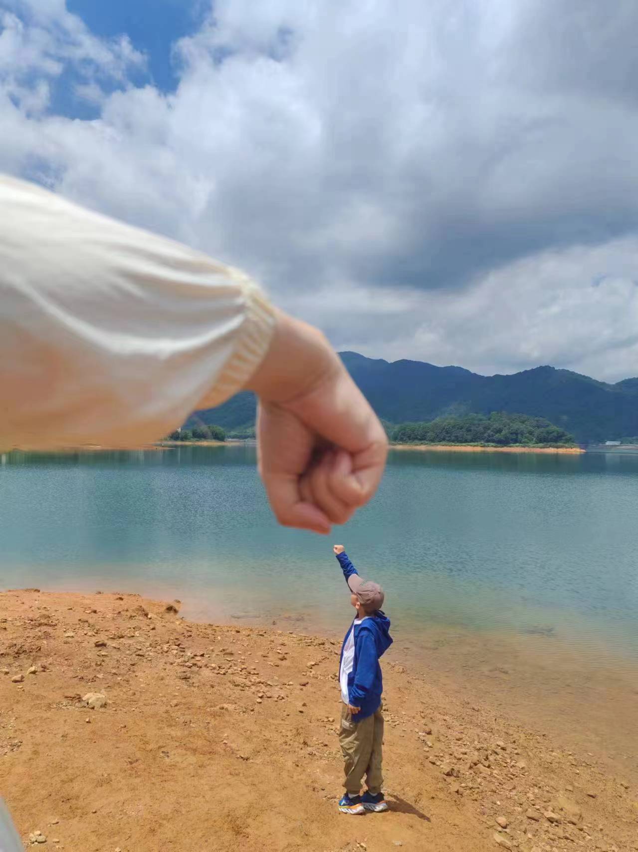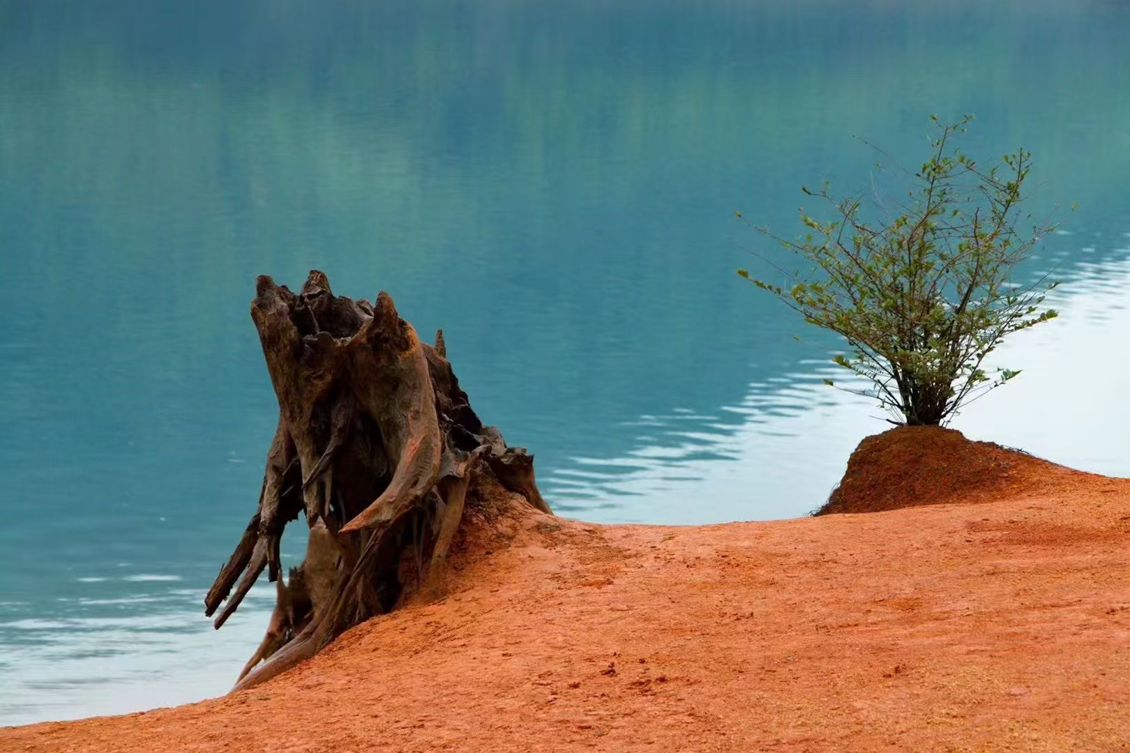 或漫步在湖边碧道上,或漫步湖岸上,与枯树桩、巨石、大笨钟合影,来一组美美的照片。