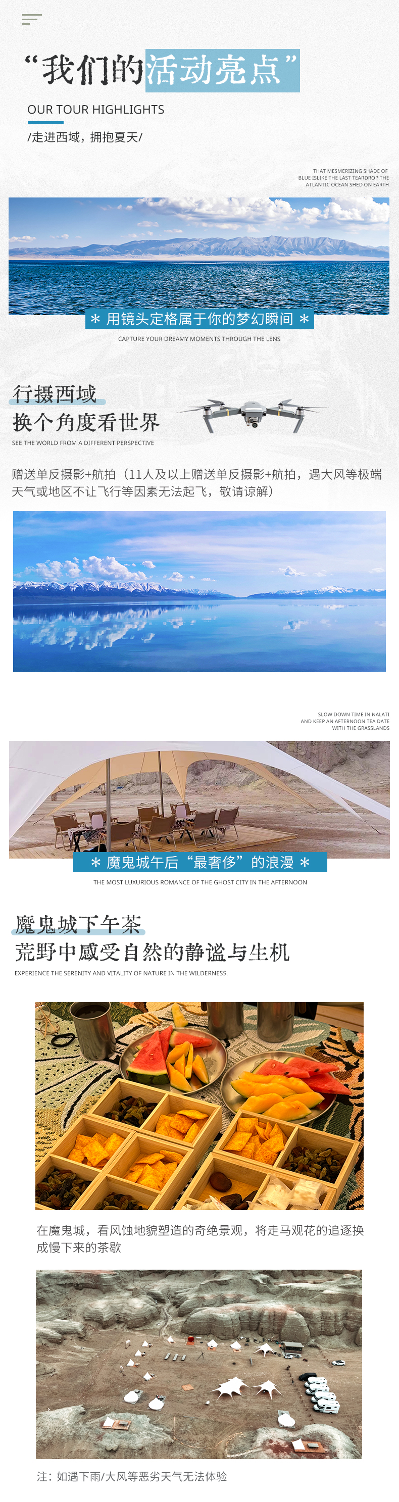 5. 赠送单反摄影+航拍(11人及以上赠送单反摄影+航拍,遇大风等极端天气或地区不让飞行等因素无法起飞,敬请谅解);