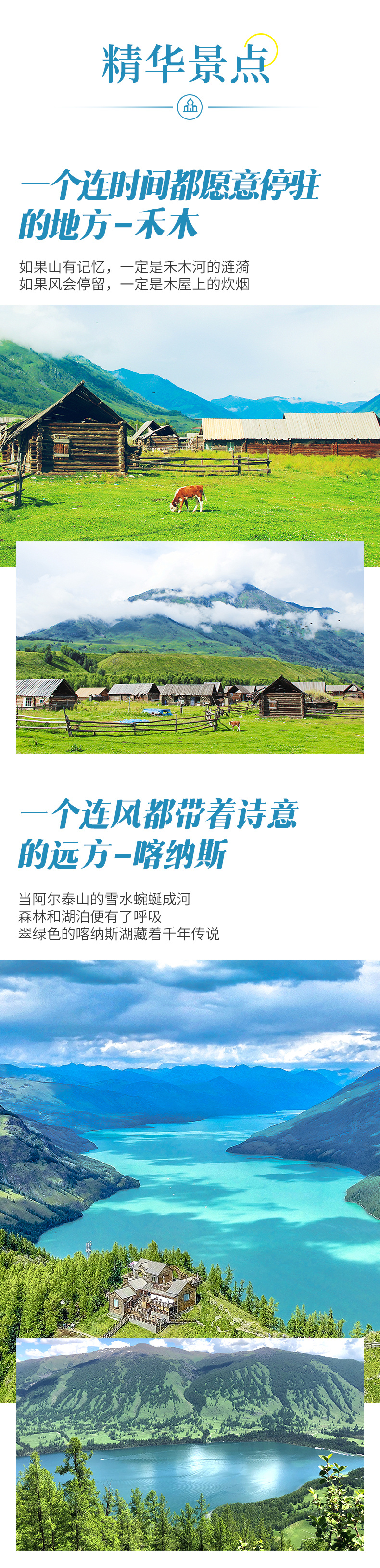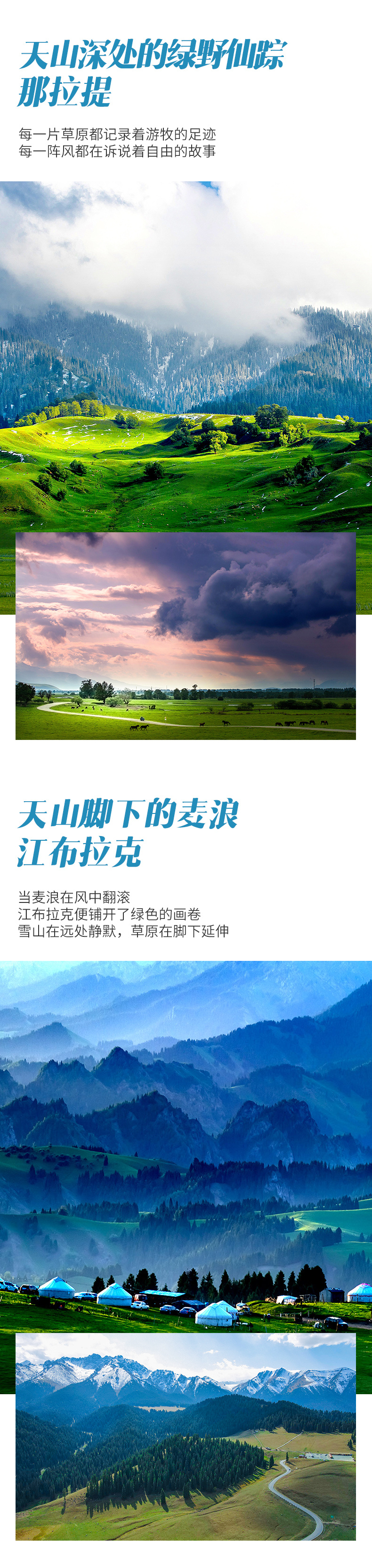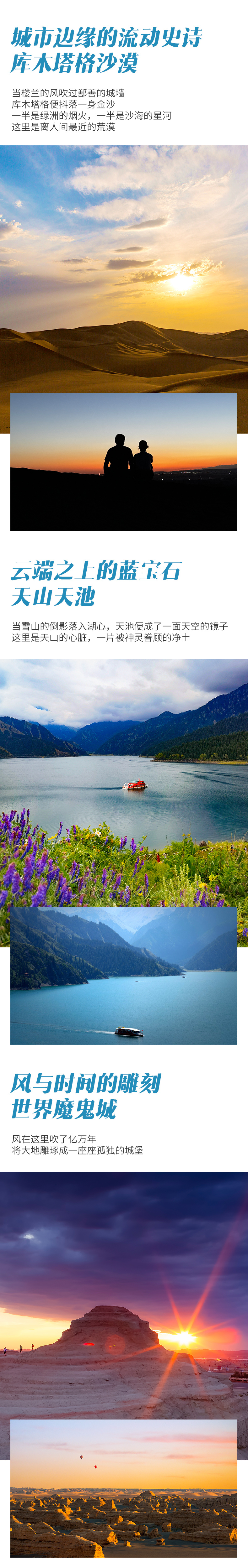 4、门票:海上魔鬼城门票+环保车、禾木门票+环保车、喀纳斯门票+环保车、世界魔鬼城门票+环保车、赛里木湖自驾门票、那拉提门票+空中草原环保车+河谷草原、坎儿井门票、库木塔格沙漠门票+环保车、江布拉克门票+环保车、天山天池门票+环保车;