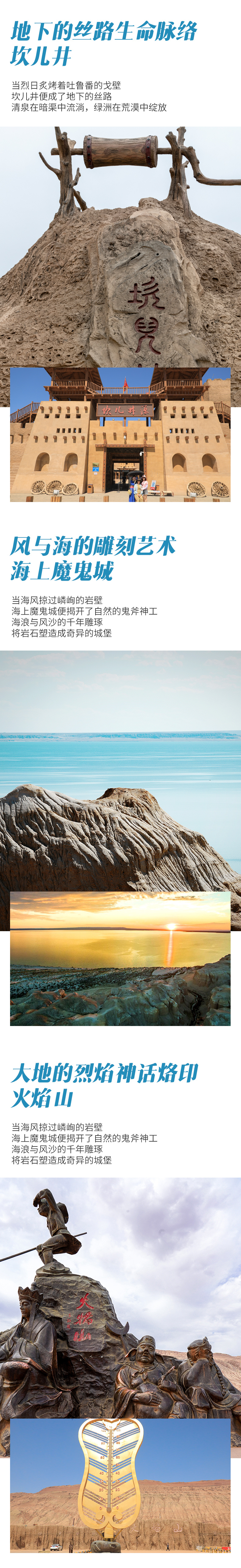和静-坎儿井(320公里,约5.5小时)-途观火焰山-库木塔格沙漠(120公里,约2小时)-鄯善