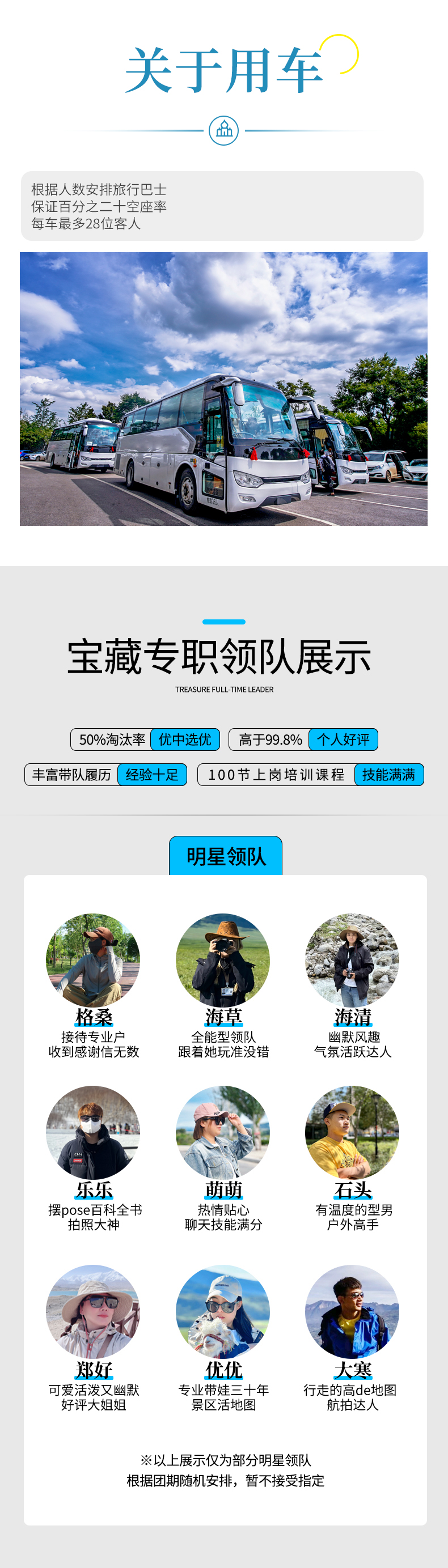 5、领队:全程户外领队并持有导游证上岗,配备单反+无人机,绝非传统导游(10人及以下为司机兼管家,帮助大家购买门票,给团友游玩建议,无法进入景区和提供专业讲解等服务,敬请谅解)。