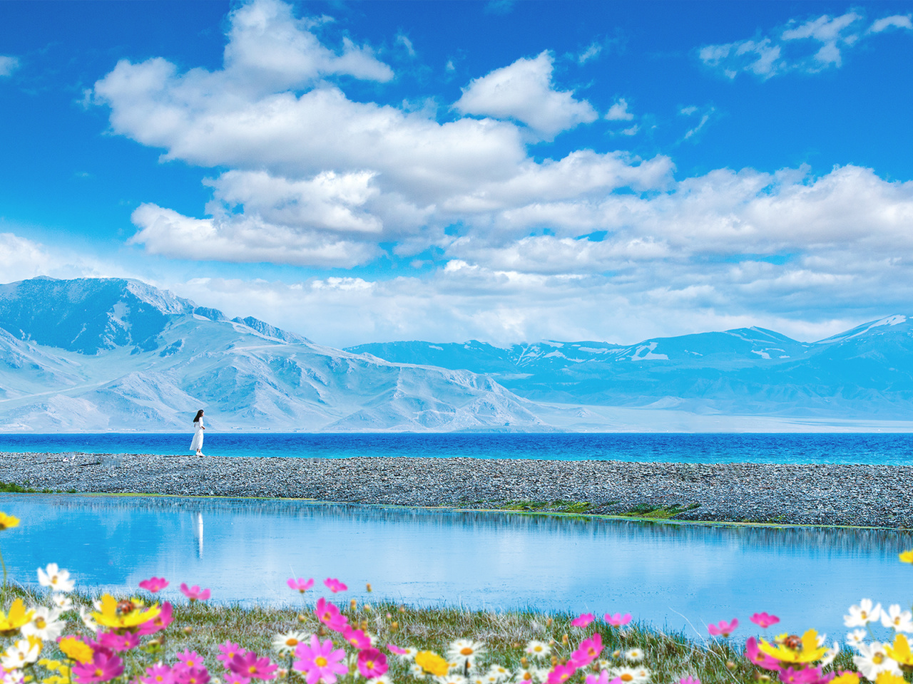 12:00抵达被称之为“大西洋一滴眼泪”的【赛里木湖】。新疆海拔最高、面积最大的高山冷水湖。赛里木湖呈椭圆形,像是一颗蓝宝石镶嵌在天山山脉中,湖周广泛分布着云杉林,湖畔的草原是优良的天然牧场,点缀着成片的各色花卉,因此到赛里木湖赏花也逐渐成为这里的旅游亮点之一,乘坐我们自己的车沿着环湖公路,边走边玩,东门进南门出。从不同的角度拍摄欣赏美丽的赛里木湖。