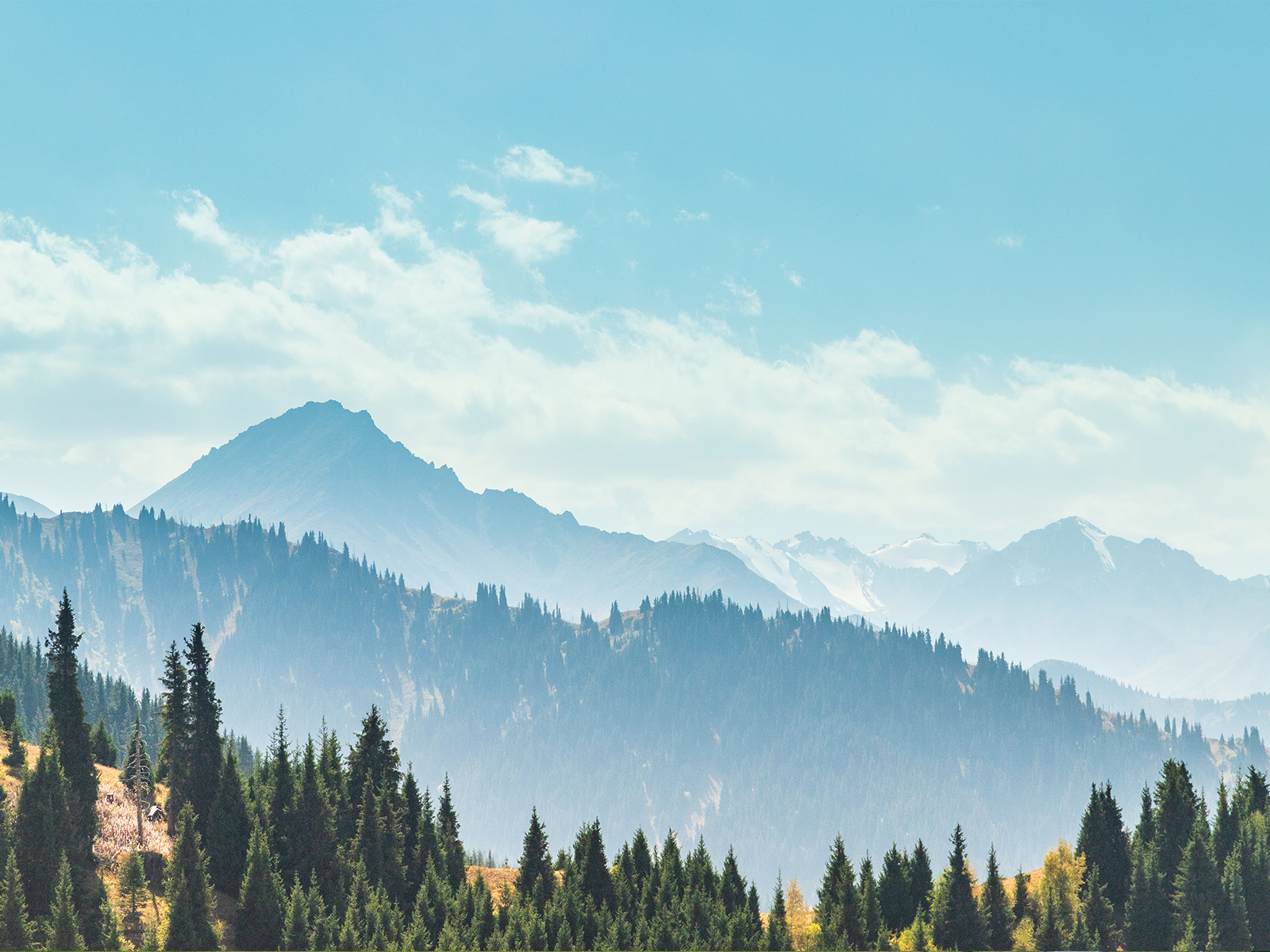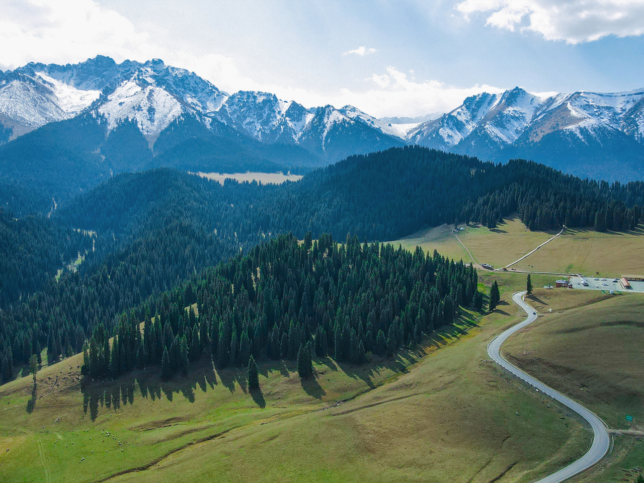 16:00 继续前行便来到艾肯达坂,最高处海拔 3000 多米。这里以险峻、陡峭、气候多变而闻名。这段路的风景堪称一绝,高山常被积雪和云雾笼罩,越接近山顶,景色越如梦似幻,仿佛行驶在仙境云端。